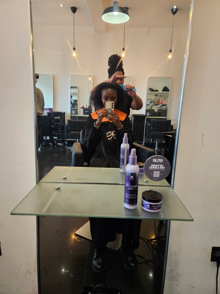 Elite Lounge is a very popular hair salon specializing in Afro and European hair. They have a few branches but I went to the branch closest to me in Lewisham. This branch also came recommended by my friend Emma( hey girl hey). I booked a wash & blow dry with a treatment(ULTIMATE SMOOTHNESS) and a trim with Phyllis